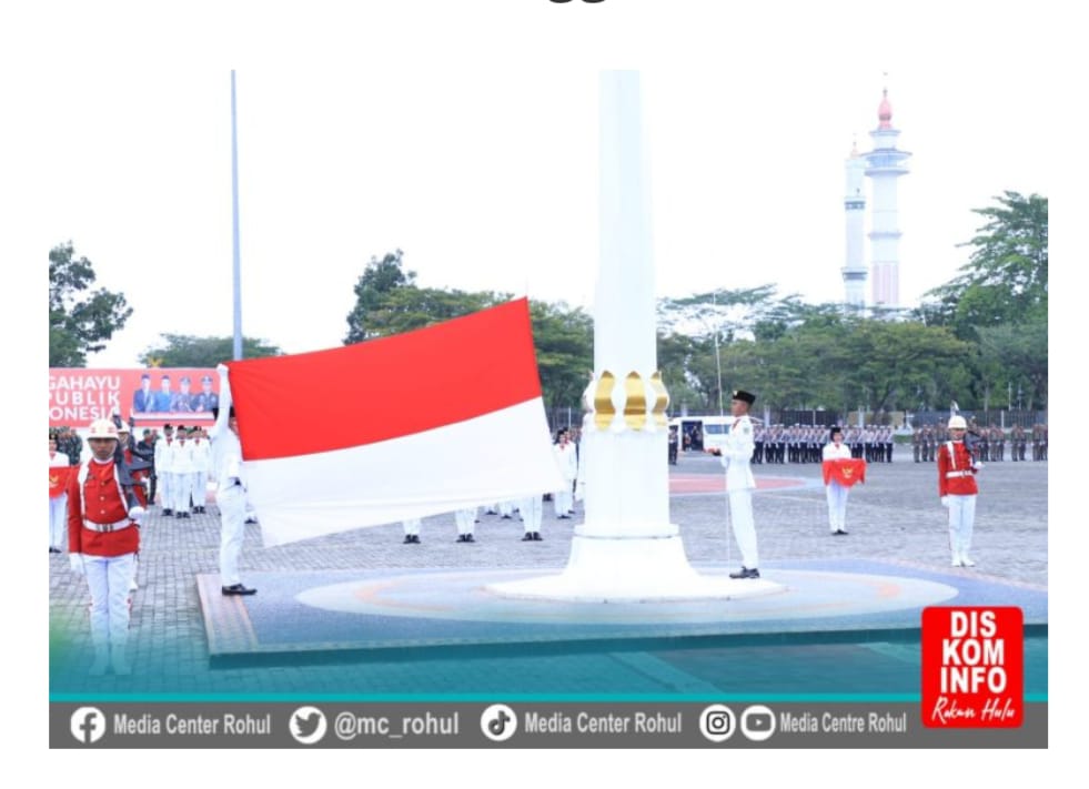 Sementara Petugas Pengibaran Bendera Sang Merah Putih, Danki Pasukan Letda Inf Sutrisno Jabatan Danton SMS Kompi Bantuan Yonif 132 Bima Sakti, Dan Pasukan 8 Petugas Pembawa Baki Pengibaran penjemput Bendera Delmiati Siswa SMAN 1 Ujung Batu, Putri dari Ayah Alm.Uwan dan Ibu Eti, Pengibar Bendera Penarik Tali Muhammad Daffa Budiman Siswa SMAN 1 Rambah Hilir, Putra dari Ayah Husni Budiman, Ibu Akyuni, Pembentang Bendera Faisal Ramadhani Siswa Ponpes Basma Putra dari ayah Suryadi Ibu Nurbaiti, Pemberi Aba aba Reno Cahyadi Siswa SMA N 1 Ujung Batu, Putra dari ayah Diki Setiadi ibu Ningsih Asih, Pengapit Kanan Pengamil Bendera Aldo Akma Anggota Polri dan Pengapit Kiri Pengambil Bendera Imanuddin Maulana Lubis Anggota Polri.