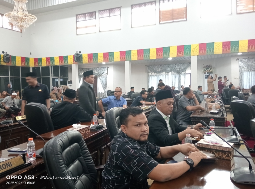 Sidang paripurna ini dipimpin langsung oleh Ketua DPRD Rohul, Hj. Sumiartini, didampingi oleh Wakil Ketua Nono Patria Pratama, SE, Wakil Ketua Porkot Lubis, SH, MH, dan Wakil Ketua M. Aidi, SH. Selain itu, hadir pula para anggota DPRD Rohul, Bupati dan Wakil Bupati Rohul periode 2025-2030, Anton ST, MM, dan Syafaruddin Poti, SH, MM.